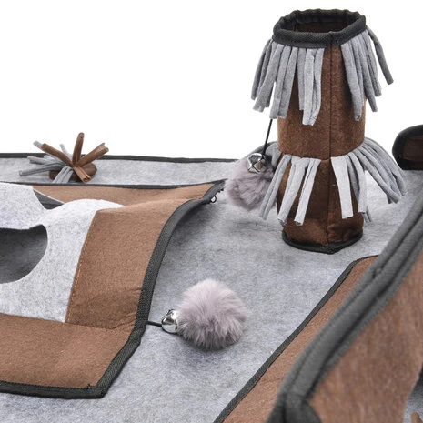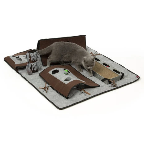 Laat je trouwe viervoeter zijn lekkernijen verdienen. Diverse verstopplekken nodigen uit tot zoeken en ravotten. Er zijn gaten in elke tunnel, toren of schuilplaats zodat uw kat er met zijn poot doorheen kan en de geïntegreerde plukjes speelgoed inclusief bellen kan vangen. Beleef samen urenlang plezier met krabben, zoeken en spelen. Daag je kat uit! Pure bezigheid, door actief spel en instinctontwikkeling. Interactief spelen was nog nooit zo leuk!Â