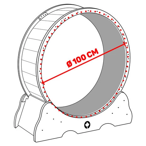 Het wiel heeft een diameter van 100 cm en is voorzien van een zacht loopkleed dat zorgt voor extra comfort en grip terwijl je kat erop loopt of rent. Deze wordt aan de binnenzijde van de wielkast bevestigd met een sterk klittenband. Het loopkleed kan ook worden verwijderd en weer worden gereinigd, zodat het loopwiel altijd hygiënisch en schoon blijft.