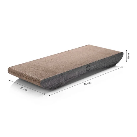 De volgende stap in onze ontwikkeling van moderne krabplanken is de Comet. Hij past in elke woonomgeving, en verdient terecht de naam krabmeubel. Een platte en een gebogen kant nodigen uit tot klauwen, krabben, maar ook dommelen en liggen. Katten geven de voorkeur aan of houden van dozen van golfkarton en pakken de krabplanken meestal meteen. De bijzonder stevige oppervlaktestructuur neemt gemakkelijk grote lasten op en biedt de kat de ideale gelegenheid om te klauwen en te krabben, hoe groot of zwaar de kat ook is. Ook inbegrepen is een portie kattenkruid om aan te wennen.