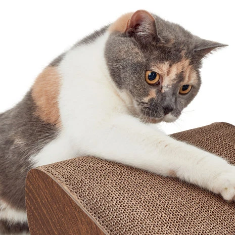 Het kattenmeubel is een welgevormde, futuristische golf voor je huis en puur plezier voor je kat: krabben, spelen en slapen – aan beide kanten te gebruiken.