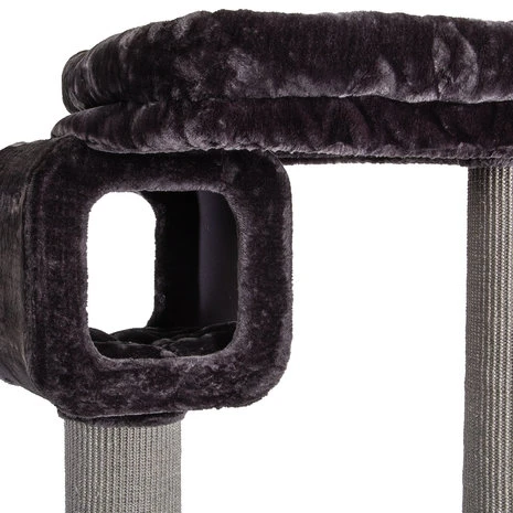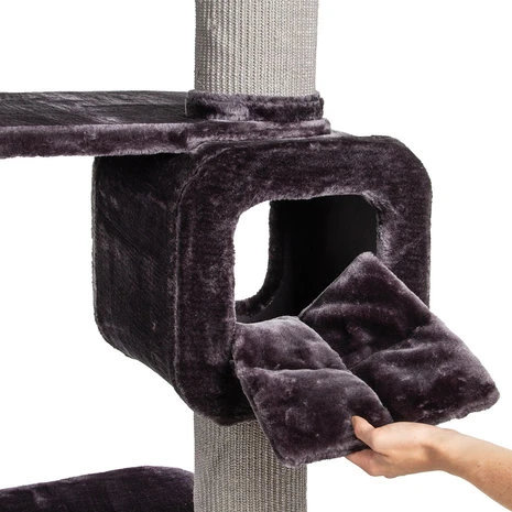 Met voldoende ruimte en diverse speel- en krabvlakken biedt deze krabpaalserie het ultieme kattenparadijs. Het is heerlijk spelen, verstoppen, maar ook even terugtrekken en slapen in de vele knusse huisjes met fluweelzachte kussens, die bij vervuiling snel en makkelijk schoon te maken zijn. De huizen zijn aan beide zijden open en bieden de beste mogelijkheid tot observatie. De vele platforms bieden op elke verdieping voldoende krab- en ligplekken. De top is het torenhoge, enorme en comfortabele ligbed met een afmeting van ca. 60 x 60 cm en een opstaande rand met een hoogte van 10 cm. Van daaruit heeft je fluwelen poot alles in zicht en kan hij zijn territorium perfect observeren.