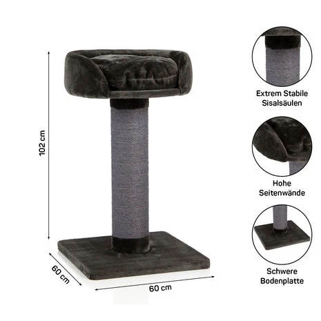 De robuuste en stabiele krabpaal Savanah XL van CanadianCat is zowel geschikt voor grote als voor kleine katten. De verhoogde ligging zorgt voor een optimaal overzicht van het huis en is knuffelzacht. De grote en zware bodemplaat van de Savanah staat garant voor een stevige stand, ook als het even tegenzit. De ca. 20 cm Ø dikke sisalzuil is ideaal voor het slijpen van klauwen en ontziet je meubels en behang.