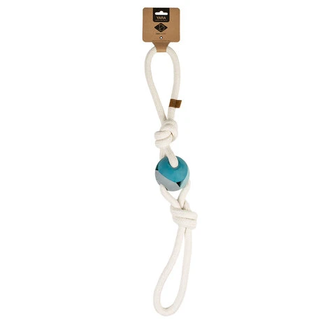 Yara van D&D Home is een hondenspeeltje gemaakt van sterk natuurlijk rubber in trendy kleuren in combinatie met een katoentouw. Katoentouw is het favoriet kauwmateriaal voor de hond, het verzorgt bovendien de tanden en het tandvlees. Dit speeltje is ideaal voor apporteer- en trekspelletjes.. De touwlussen zijn ideaal voor apporteren en trekspelletjes met baasje of meerdere honden.