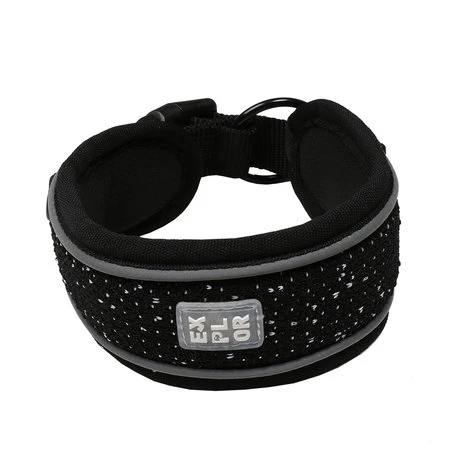 Trek er op uit met de EXPLOR Ultimate Fit Control Collar, een zachte, comfortabele en brede halsband gemaakt van luchtdoorlatende en soepele stoffen. Het brede oppervlak en de tunnel waarin de verstelbare band verwerkt zit, zorgen voor een optimale drukverdeling rond de nek van de hond bij trekken of ingrijpen. Doordat de gesp door de roestvrij stalen D-ring gehaald wordt alvorens deze dicht te klikken, staat er minder druk op de gesp wanneer er getrokken wordt aan de D-ring. Dit maakt de EXPLOR Ultimate Fit Control halsband extra veilig in gebruik. De materialen zijn zorgvuldig gekozen. De halsband is snel droog, slijtvast en door de reflecterende bies rondom de halsband, goed zichtbaar in het verkeer. Aan de binnenzijde van de halsband kan een telefoonnummer genoteerd worden en vind je duidelijke wasinstructies voor een optimale levensduur van de halsband. Go out & EXPLOR!