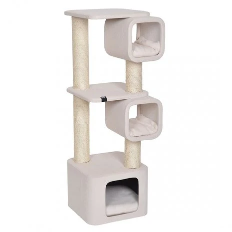 De ‘Akita’-kattenboom van EBI is een Nederlands ontwerp, geïnspireerd door het Japanse zen-concept. De esthetiek van deze paal geeft kalmte en minimalisme weer. Deze paal is bekleed met een zachte interieurstof en past dan ook uitstekend in elk interieur. Deze paal bevat een grot met een kussen in teddyvacht waar uw kat uiterst comfortabel kan slapen. Bovenaan zijn er twee ligplatformen, elk met een tunnel met kussen. Daardoor is de paal het ideale luilekkerplaatsje voor uw kat.