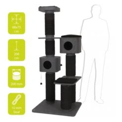 De ‘Nagano’-kattenboom is een eigen en uniek EBI ontwerp, geïnspireerd op het Japanse “Zen” concept. De esthetiek en kleuren van deze paal geeft kalmte en minimalisme weer. Deze hoekkrabpaal is bekleed met een zachte interieurstof en past dan ook uitstekend in elk interieur. De Nagano bestaat uit verschillende levels waar genoeg mogelijkheden zijn om op te relaxen. Er is een knusse schuilgrot en een plateau met een comfortabel foam kussen. Bovenaan bevindt zich 2 unieke en zelfontwikkelede stalen hangmatten met wasbare hoes. De verticale krabplank en de 12cm dikke palen met 10mm sisal zorgen voor een goede stabiliteit en komen tegemoet aan de krabbehoefte van je kat.