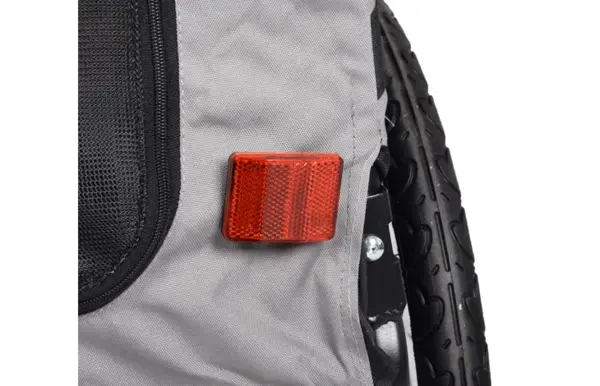 Hondenfietskar met polyester hoes en stalen frame. Ook geschikt voor E-bike met voorwiel of middenmotor. Eenvoudig te monteren met bevestigingssysteem en 2 koppelstukken. Diversen reflecterende stroken en reflectoren voor zichtbare veiligheid.