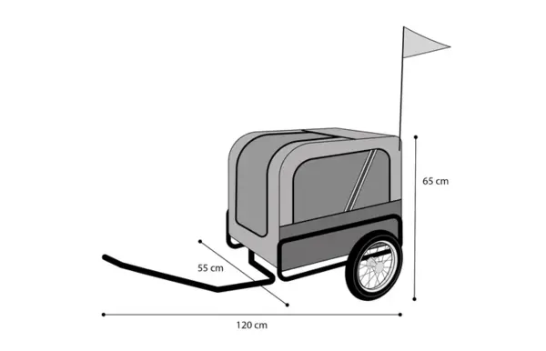 Hondenfietskar met polyester hoes en stalen frame. Ook geschikt voor E-bike met voorwiel of middenmotor. Eenvoudig te monteren met bevestigingssysteem en 2 koppelstukken. Diversen reflecterende stroken en reflectoren voor zichtbare veiligheid.