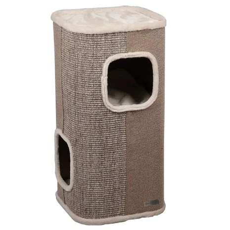 Deze krabton is de ideale rust en speelplaats waar je kat kan spelen en zich op tijd kan terugtrekken. Met een uitneembaar kussen binnen en een gevoerd ligplateau bovenop.