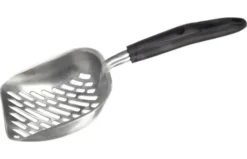 Stevige kattenbakschep gemaakt van roestvrij aluminium. Zware kwaliteit zeer geschikt voor klontvormende kattenbakvulling. Buigt niet en zal nooit breken. Groot schepoppervlak om snel en efficiรซnt de kattenbak te reinigen.