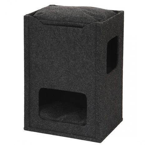 De moderne Krabbox Cuby in hoogwaardig vilt biedt een speels kraboppervlakte en een comfortabel liggedeelte voor de kat. De grote, bruine sisal krabzijde biedt de kat voldoende lengte om de nagels aan te scherpen. De krabbox heeft twee openingen met een zacht kussen, zodat de kat zich kan terugtrekken en heerlijk kan wegdromen. De bovenkant van de krabbox biedt een ruime, comfortabele ligplaats van waaruit de kat het overzicht kan bewaren.