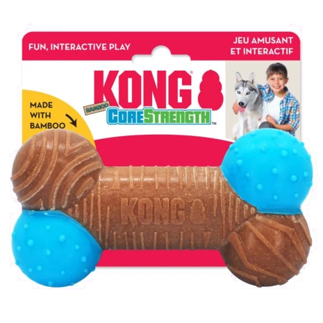 Dankzij het gebruikte materiaal, dat met bamboe verrijkt is, worden de kauwinstincten van uw hond vervuld. De verhoogde noppen en texturen helpen bovendien de tanden van de hond te reinigen en zorgen voor langdurig speelplezier. Dankzij het natuurlijke aroma van de KONG CoreStrength Bamboo Bone wordt de interess…