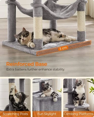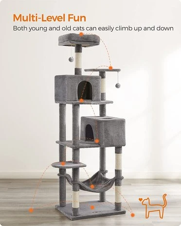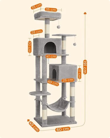 Krabpaal Wattens heeft een hoogte van maar liefst 191 cm! Ondanks dat deze krabpaal zo hoog is, is deze zo gemaakt dat deze ook geschikt is voor oudere katten en zelfs kittens. De opstap en lig plateaus zijn zo geplaatst dat het makkelijker is om omhoog te klimmen.
