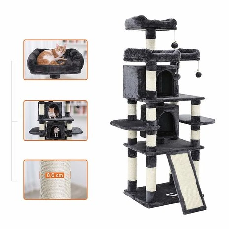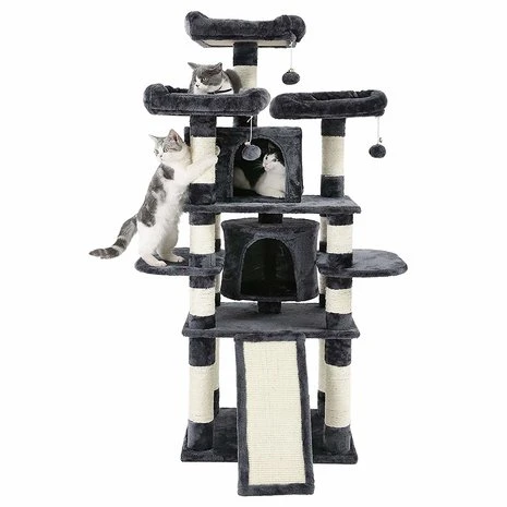 Krabpaal Bamberg is een prachtige krabpaal met heel veel schuil/lig plaatsen en meer dan voldoende krab mogelijkheden. Zeer geschikt voor meerdere katten die allemaal een eigen plekken kunnen vinden. Deze krabpaal is stevig en stabiel. Het pluche is extra dik waardoor deze krabpaal lang mee zal gaan.Â
