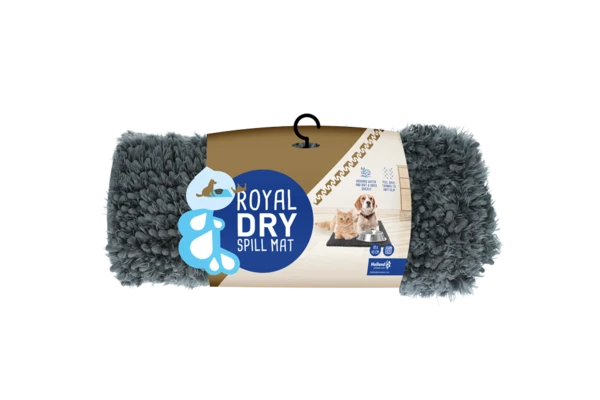 Behandel uw hond als een koning of koningin met de unieke absorberende microvezel anti-knoeimat van Royal Dry. De Royal Dry anti-knoeimat zuigt water en vuil op als een spons, is extreem duurzaam en superzacht is dus ideaal voor onder een drink- of eetbak.
