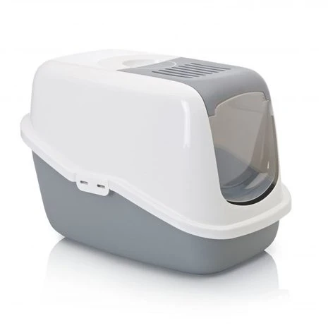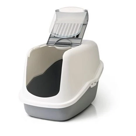 Een mooi vorm gegeven kattenbak in een modieuze kleurstelling. Doordat het deurtje samen met het binnenste gedeelte van de bovenzijde in een handomdraai los te klikken is hoef je niet meer de complete bovenzijde van de onderbak los te maken om deze schoon te maken. Het los geklikte gedeelte kan je omhoog duwen zodat je er makkelijk bij kunt.