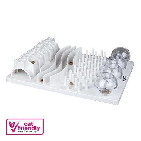 Het product heeft een anti-slip bodem wanneer je kat gaat spelen zal het denkspeelgoed niet gaan schuiven. Set met diversen modules waar het lastig is om de snack te pakken te krijgen, krijgt jou kat het snoepje te pakken?
