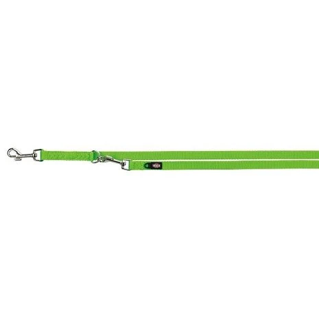 Zeer robuuste dubbellaags nylon hondenriem. 3-voudig verstelbaar in de gewenste lengte. extra oogjes om bijvoorbeeld de hondenpenning, flasher of poepzakhouder aan te hangen.Â