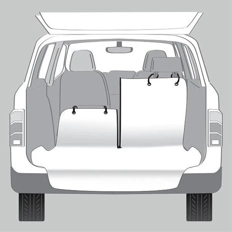 Kofferbak beschermer gemaakt van polyester, deze beschermer is deelbaar zodat het mogelijk is om een deel van de achterbak naar beneden te klappen, zelfs wanneer je de achterbank in zijn geheel naar beneden klap zijn deze ook nog eens beschermt tegen vuil en haren. Middels de nylon riem is deze eenvoudig aan de hoofdsteunen te bevestigen. Klittenbanden onder de deken houden de deken goed op zijn plaats. Een extra flap aan de voorzijde beschermt je bumper wanneer je hond erin of eruit springt.