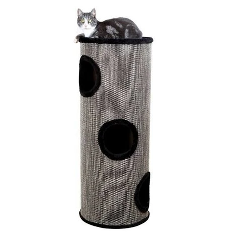 Stevige krabton bekleed met sisaltapijt met voldoende lig, speel en slaapplaatsen. De binnenkant van deze krabton is geheel bekleed met pluche. kleur zwart