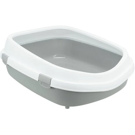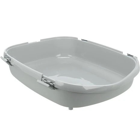 Open kattenbak met rand voor grote katten zoals de Maine Coon. De extra rand bovenop zorgt ervoor dat het grid niet uit de bak valt. De kattenbak staat op rubberen voetjes zodat de bak niet verschuift of krassen veroorzaakt op de vloer.Â