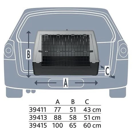 Zeer stevige vervoersbox geschikt voor het vervoeren van de hond in de auto. De box is voorzien van handgrepen aan de zijkant waardoor deze makkelijk te plaatsen is. De box is gemaakt van zeer sterk kunststof en getest in de crash-test. Verkrijgbaar in diversen afmetingen.