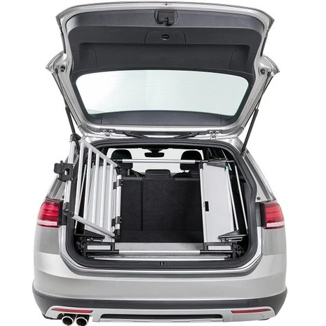 Maak de bagageruimte tot hondenbox. Voor plaatsing achter de klep. Geschikt voor bijna elk type auto. Breedte traploos aan te passen door verstelbare zijdelen, verstelbare hoek van het hek. Dankzij dit artikel kan de bagageruimte geheel gebruikt worden als ligplek. Eenvoudig in te klappen en op te bergen.Â