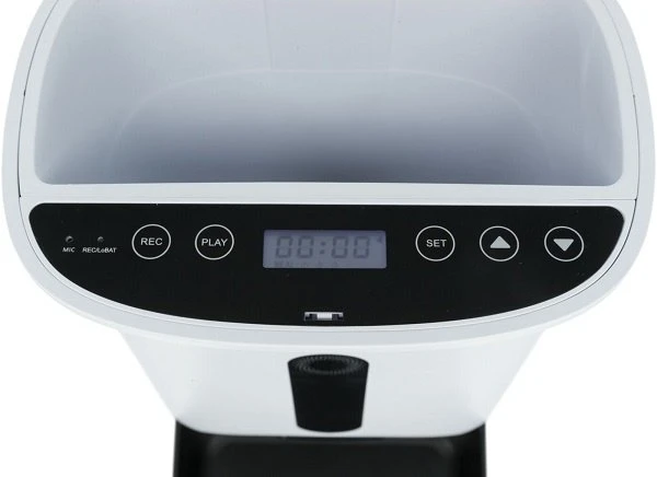 Programmering van maximaal 4 maaltijden per dag. Voor maximaal 4,3 l droogvoer, voor droogvoer met een grootte van max. ø van 5-15 mm/ kroketje geschikt. Desgewenst kan er op het voedertijdstip een ingesproken bericht worden afgespeeld. Automatische toetsenblokkeringÂ