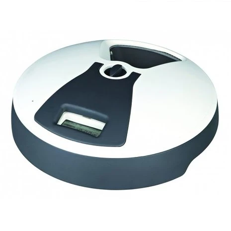 Een kunststof voederautomaat om op vaste tijden je hond eten te geven. De automaat is in te stellen op tijd, zodra de timer wordt geactiveerd zal het klepje opengaan. Drie voedertijden kunnen geprogrammeerd worden. De automaat is ook geschikt voor natvoer en is simpel schoon te maken. Werkt op batterijen en het apparaat zal op het display via een geluidsignaal aangeven wanneer de batterijen vervangen dienen te worden. (Batterijen niet inbegrepen)